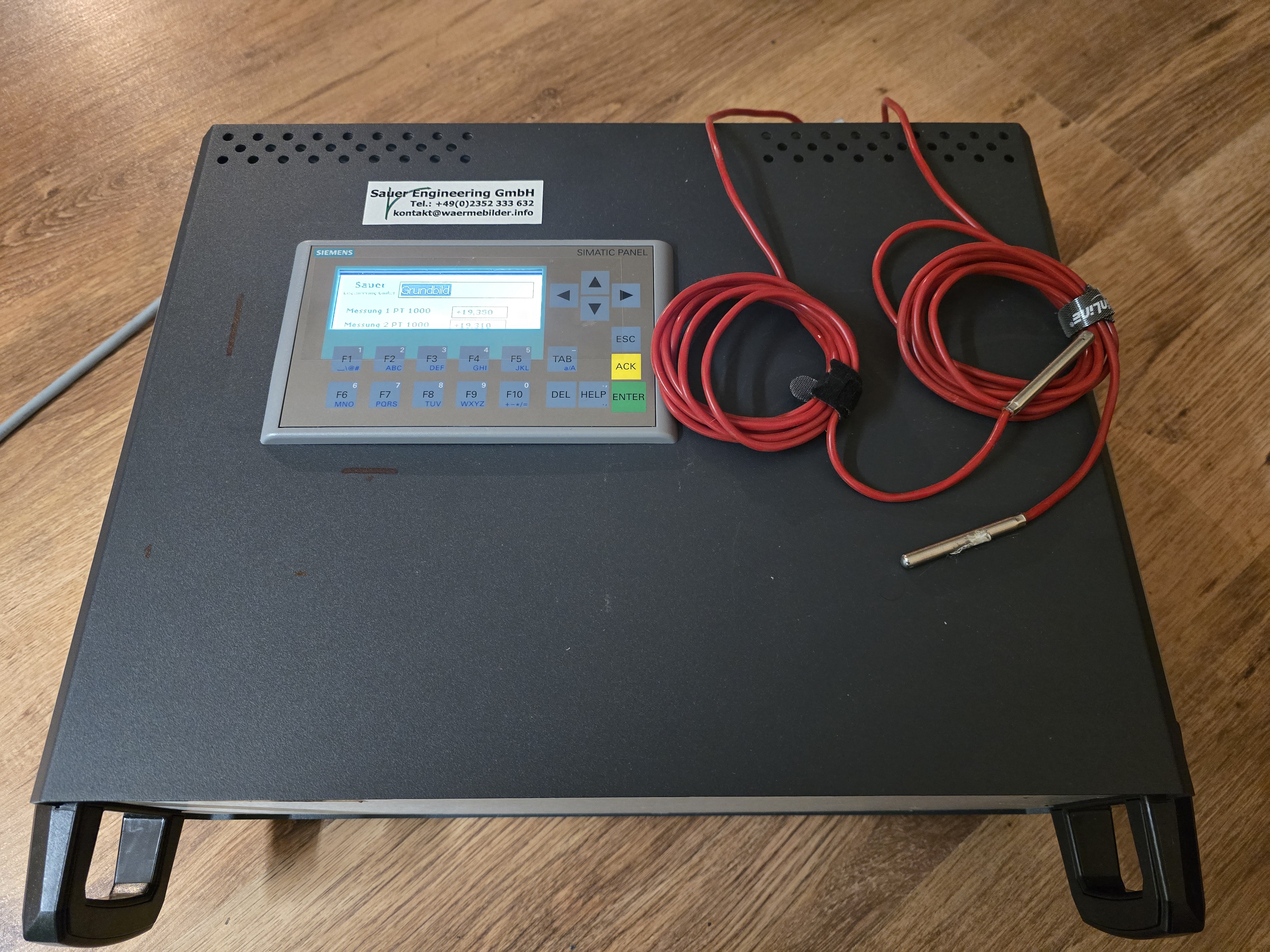 Unser Messgerät erfasst mittels einer PT1000 Messung im Schaltschrank die Temperatur. Diese wird mit einem Datenlogger erfasst und kann ausgewertet werden.