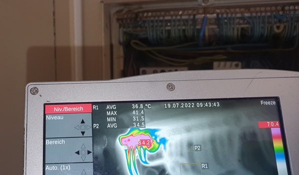 Mit der zusätzlichen Zertifikation als Geselle Energieanlagenelektroniker und mehrjährigen Tätigkeit als Elektrofachkraft in den Bereichen auf Basis der VDE 1000-10 Abs. 4.2, gepaart mit einer hoch moderne Thermografiekamera erhöhen wir für Sie den Brandschutz und somit die Anlagenverfügbarkeit.