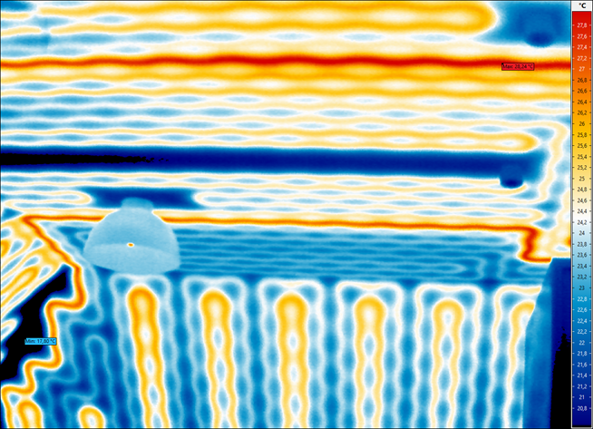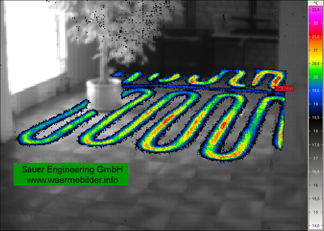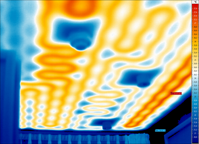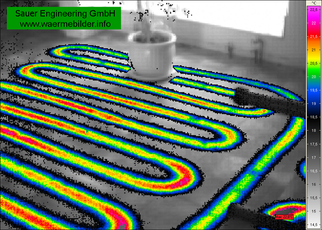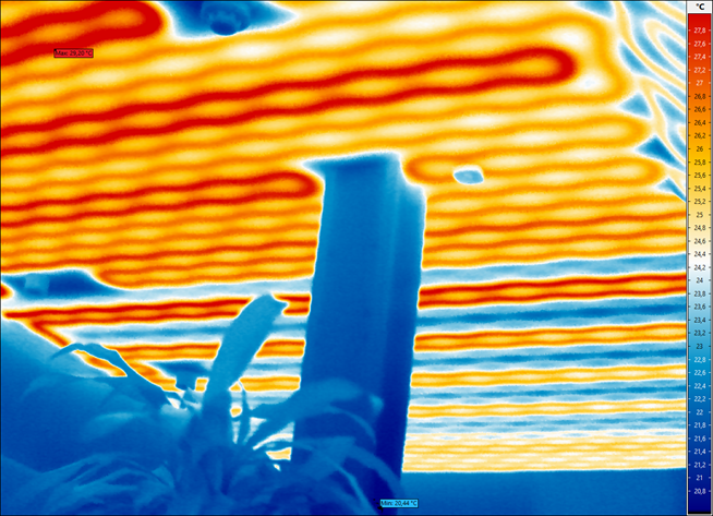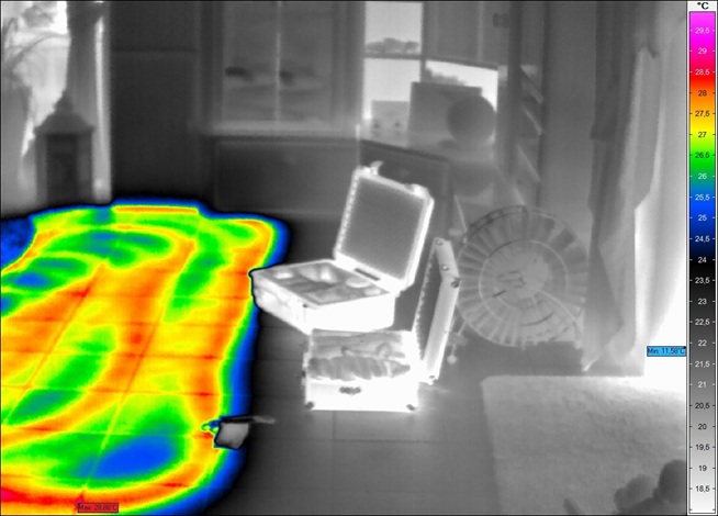 Zur Auffindung und Überprüfung einer Fußbodenheizung / Deckenheizung dient die ThermoControl - Thermografie.
