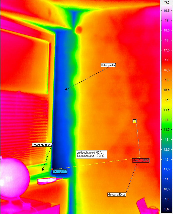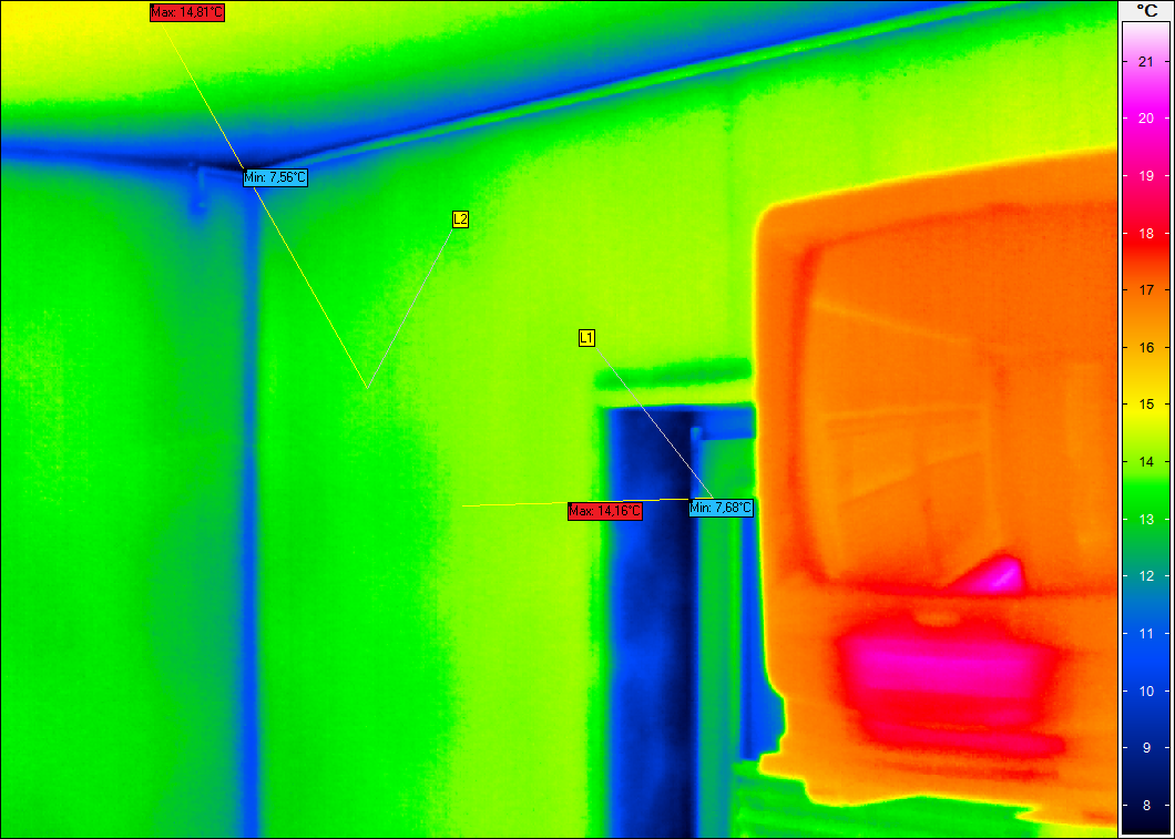 Nur mit Hilfe der Innenthermografie können gefährdete Zonen (Schimmelbildung durch Tauwasser) erkannt werden.