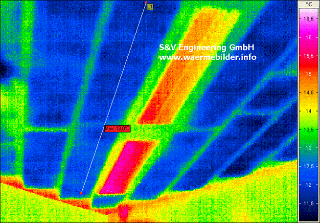 Die Funktionsfähigkeit der Kühldecken ist gut zu erkennen, da sich Fehlerstellen an der Wärmebildkamera durch höhere Oberflächentemperaturen darstellt. Unsere professionelleThermografiekamera ist in der Lage bereits kleinste Temperaturdifferenzen zu erkennen.