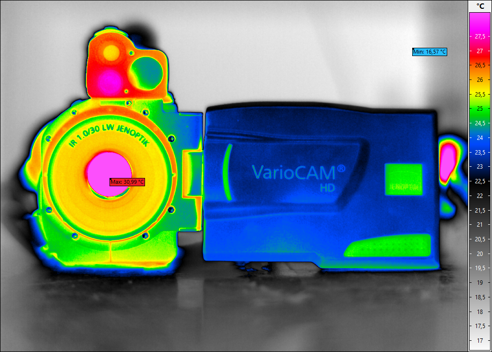 Innentemperatur einer Thermografiekamera mit Objektiv. Dies kann zu einer Fehlmessung führen